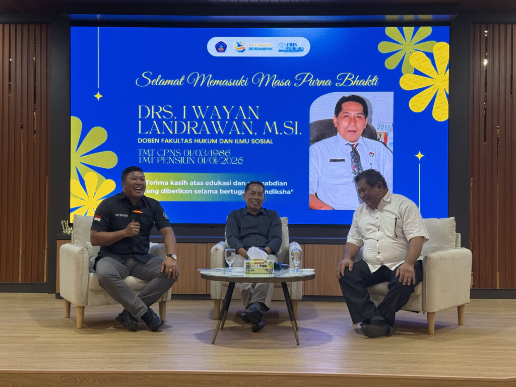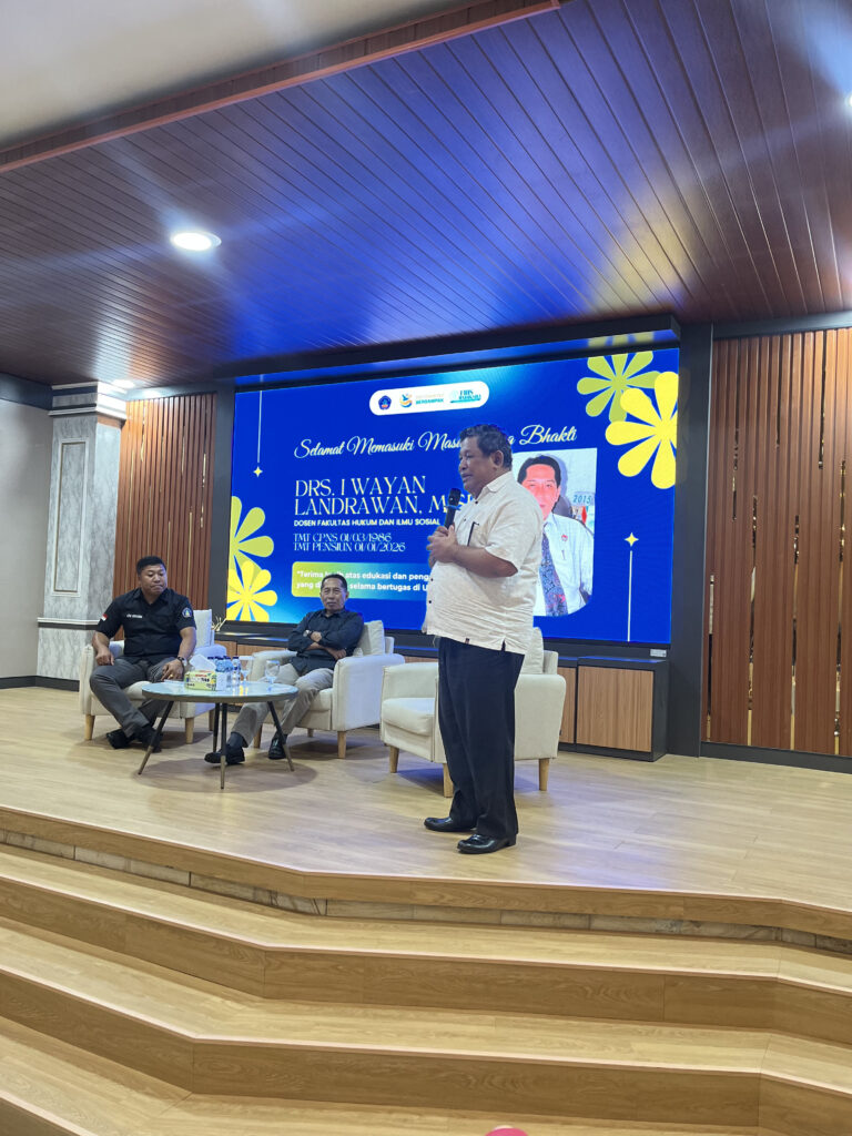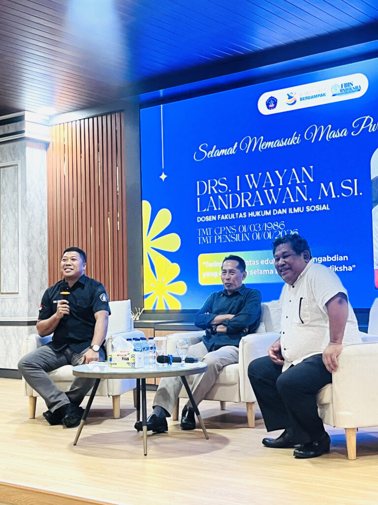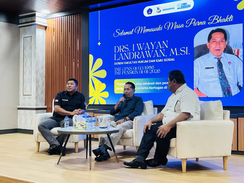 Singaraja – Fakultas Hukum dan Ilmu Sosial (FHIS) Universitas Pendidikan Ganesha (Undiksha) secara resmi menggelar acara Pelepasan Purna Tugas bagi dosen atas nama Drs. I Wayan Landrawan, M.Si. pada hari Rabu (04/02/2026). Drs. I Wayan Landrawan, M.Si. merupakan dosen Program Studi Pendidikan Pancasila dan Kewarganegaraan yang telah memasuki masa purna tugas setelah selama 40 tahun mengabdikan diri di Undiksha.