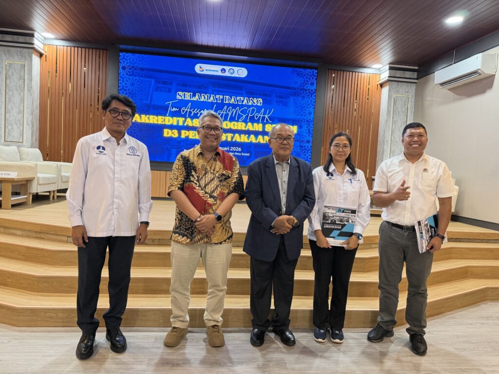 Singaraja – Fakultas Hukum dan Ilmu Sosial (FHIS) Universitas Pendidikan Ganesha (Undiksha) menggelar Asesmen Lapangan Akreditasi Program Studi D3 Perpustakaan di Ruang Seminar FHIS Undiksha. Asesmen Lapangan Akreditasi Program Studi D3 Perpustakaan yang dilaksanakan pada tanggal 11 Januari 2026 sampai dengan 13 Januari 2026 didampingi oleh Tim Asesor dari LAMSPAK. Kegiatan ini merupakan bagian dari proses penjaminan mutu eksternal yang dilaksanakan oleh Lembaga Akreditasi Mandiri Sosial Politik, Administrasi, dan Komunikasi (LAMSPAK).