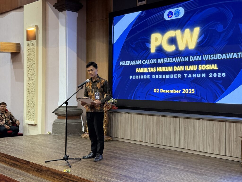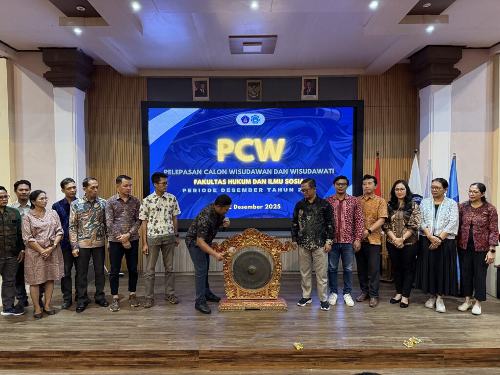Singaraja – Fakultas Hukum dan Ilmu Sosial (FHIS) Universitas Pendidikan Ganesha menggelar kegiatan Pelepasan Calon Wisudawan dan Wisudawati Periode Bulan Desember Tahun 2025 pada hari Selasa (02/12/2025) di Auditorium Balingkang Confucius Institute. Kegiatan Pelepasan Calon Wisudawan dan Wisudawati FHIS Undiksha Periode Bulan Desember Tahun 2025 diikuti sebanyak 77 calon wisudawan yang berasal dari berbagai program studi yang ada di lingkungan FHIS Undiksha. Pelepasan Calon Wisudawan dan Wisudawati FHIS Undiksha dihadiri oleh Dekan, Wakil Dekan II, Wakil Dekan III, Ketua dan Sekretaris Jurusan, Koordinator Program Studi, Ketua Gugus, Pembimbing Kemahasiswaan Fakultas dan Jurusan, Kepala Bagian Umum serta Pegawai di lingkungan FHIS Undiksha.