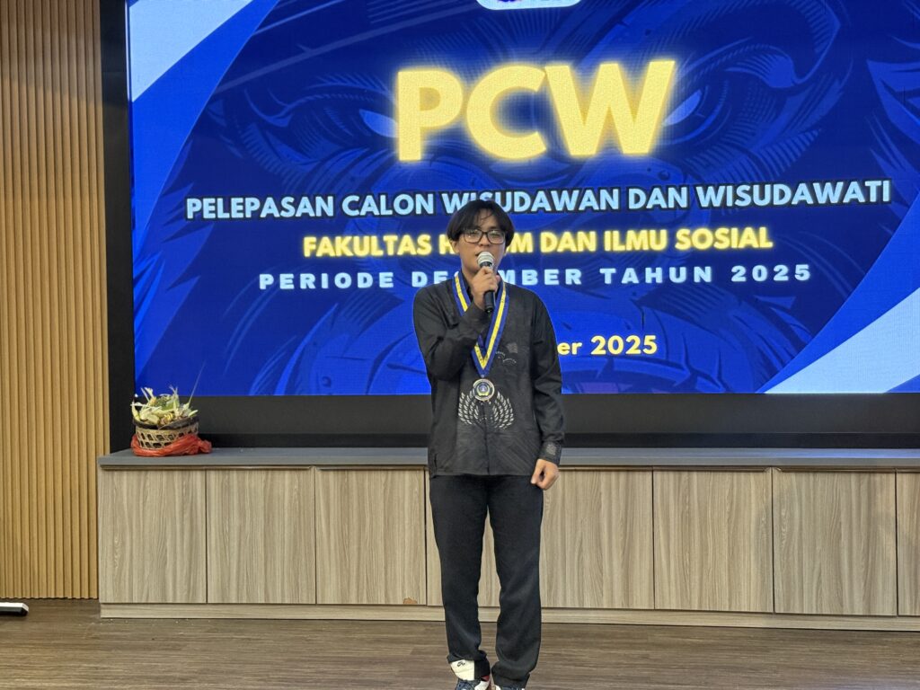 Acara Pelepasan Calon Wisudawan dan Wisudawati FHIS Undiksha Periode Bulan Desember Tahun 2025 dibuka oleh Dekan FHIS Undiksha ditandai dengan pemukulan gong. Setelah itu, dilanjutkan dengan penyematan selempang kepada seluruh calon wisudawan serta pemberian Piagam Penghargaan kepada Lulusan Pamuncak dalam Pelepasan Calon Wisudawan dan Wisudawati FHIS Undiksha Periode Bulan Desember Tahun 2025, yaitu I Made Widnyana Pramana Putra dari Program Studi S1 Pendidikan Geografi dengan IPK 3.99. “Hari ini bukan sekadar seremoni, tetapi momentum penting yang menandai langkah awal untuk berkontribusi lebih luas bagi masyarakat. Kami berharap dapat mengaplikasikan ilmu yang telah diperoleh sekaligus menjaga nama baik fakultas di dunia kerja,” ungkap I Made Widnyana Pramana Putra dalam penyampaian kesan dan pesannya sebagai lulusan pamuncak dan mewakili seluruh calon wisudawan.