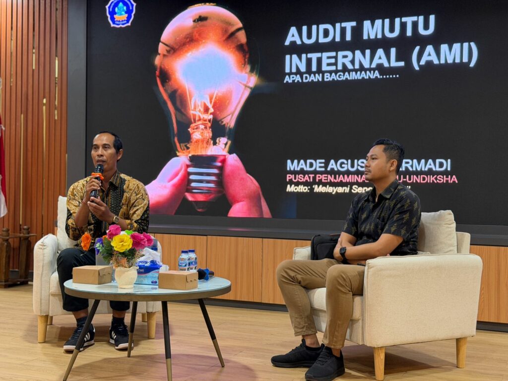 Dengan dipandu oleh moderator, yaitu Putu Indra Christiawan, S.Pd., M.Sc., Ph.D. yang juga merupakan Ketua Tim Gugus Kendali Mutu FHIS Undiksha, Prof. Dr. Made Agus Dharmadi, S.Pd., M.Pd. menyampaikan materinya terkait tujuan adanya AMI, prinsip dasar AMI, lingkup dan temuan AMI serta perencanaan dan proses pelaksanaan AMI sesuai dengan landasan AMI dari Permendiktisaintek No. 39 Tahun 2025 Tentang Penjaminan Mutu Pendidikan Tinggi.