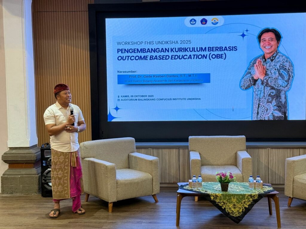 Singaraja – Dalam upaya meningkatkan kualitas pembelajaran dan lulusan yang semakin berkompeten, Fakultas Hukum dan Ilmu Sosial Undiksha menyelenggarakan Workshop Pengembangan Kurikulum Berbasis Outcome Based Education (OBE). Workshop tersebut dilaksanakan pada hari Kamis (09/10/2025) di Auditorium Balingkang Confucius Institute Undiksha dengan diikuti oleh Pejabat Struktural, Dosen, Tenaga Kependidikan dan Mahasiswa di lingkungan FHIS Undiksha serta dihadiri pula oleh alumni dari FHIS Undiksha.