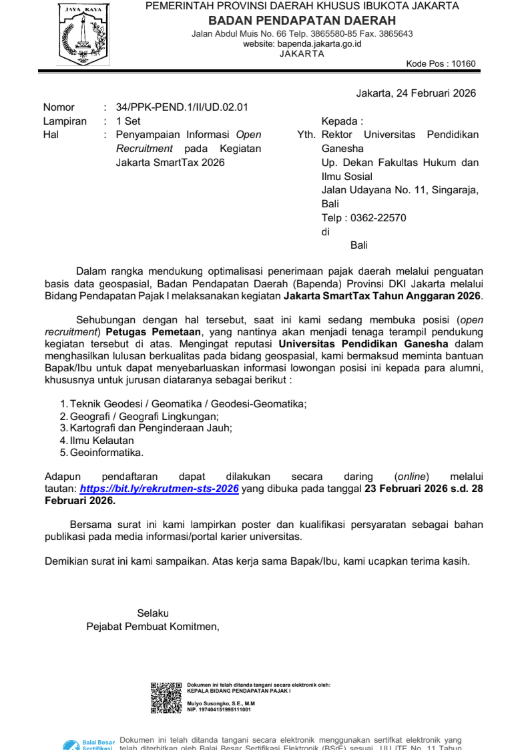 Demikian kami sampaikan, selanjutnya dimohon bantuannya untuk menginformasikan kepada seluruh mahasiswa di lingkungan fakultas masing-masing. Atas perhatian dan Kerjasama Saudara diucapkan terima kasih.