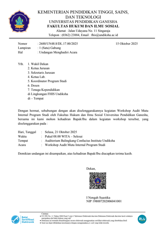15 Oktober 2025 15 Oktober 2025Categories AgendaWorkshop Audit MutuInternal Program Studi oleh Fakultas Hukum dan Ilmu Sosial Universitas Pendidikan Ganesha,