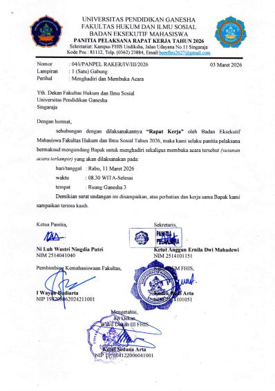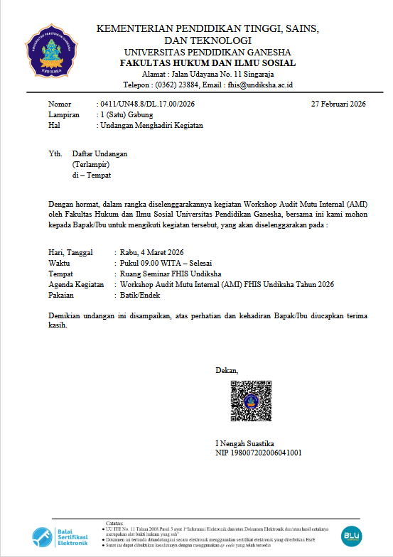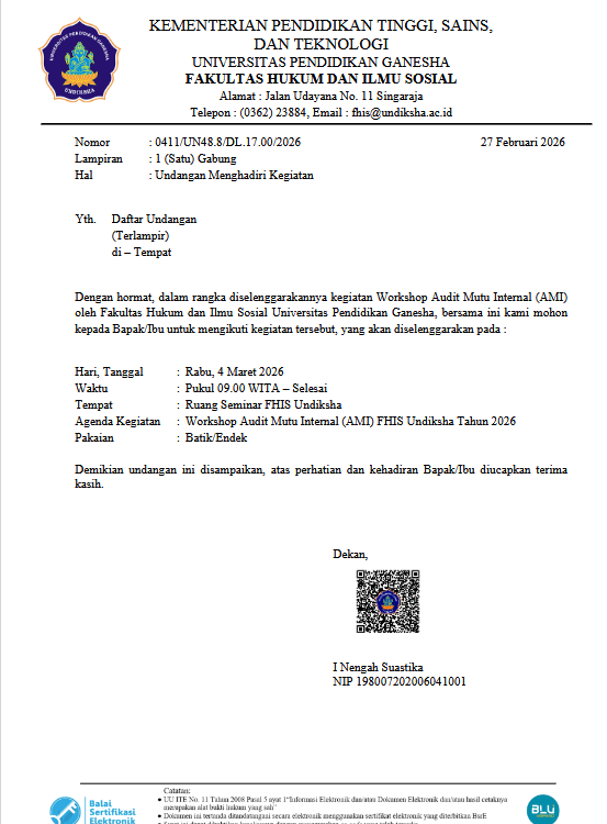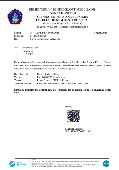 4 Maret 2026 4 Maret 2026Categories AgendaSosialisasi dan Promosi Fakultas Hukumdan Ilmu Sosial Universitas Pendidikan Ganesha