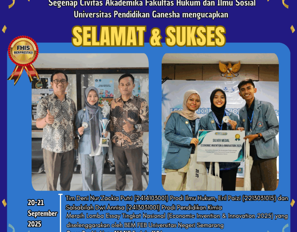 Semarang – Mahasiswa Fakultas Hukum dan Ilmu Sosial Undiksha meraih prestasi dalam ajang Lomba Essay Tingkat Nasional (Economic Invention & […]