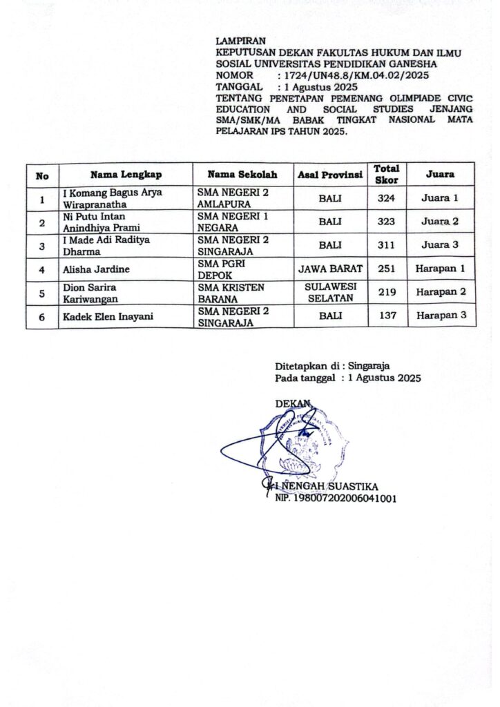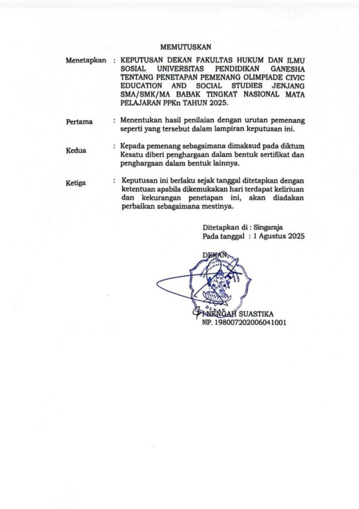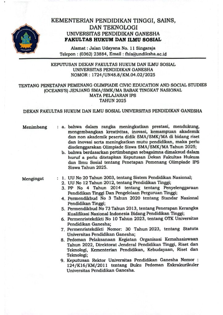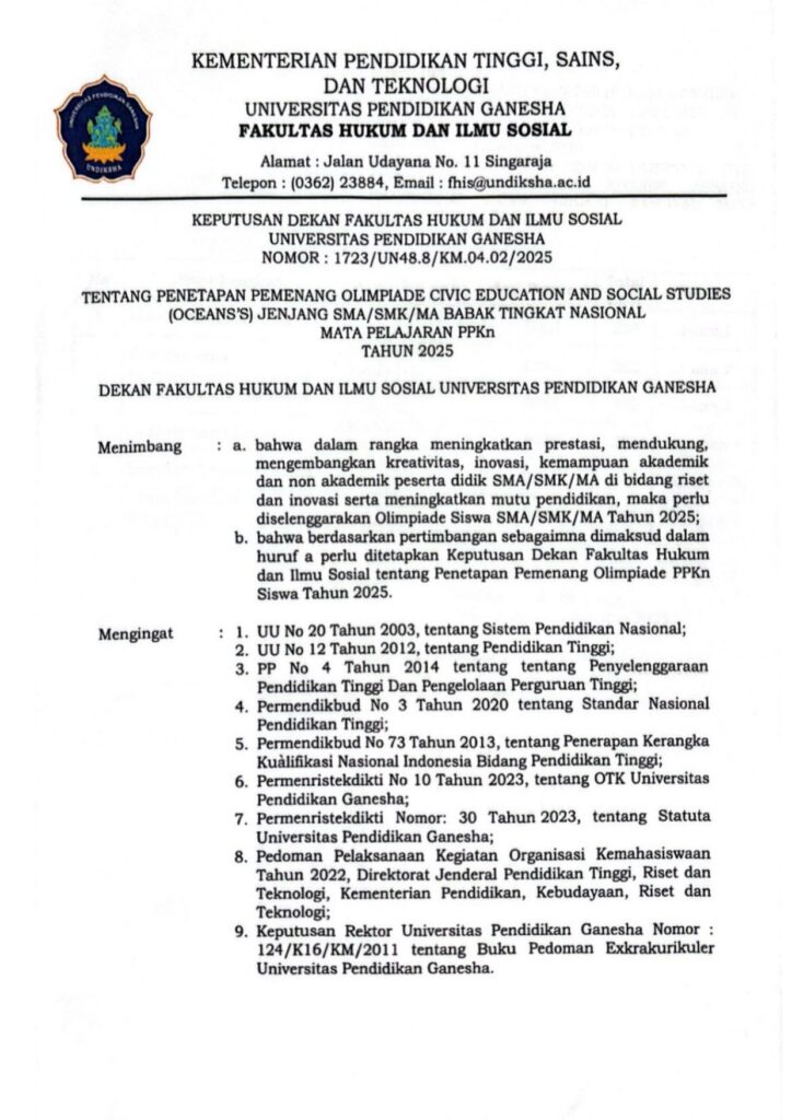 Fakultas Hukum dan Ilmu Sosial Menyelenggarakan Seleksi Babak Final Jenjang SMA/SMK/MA Olimpiade Civic Education and Social Studies Tahun 2025
