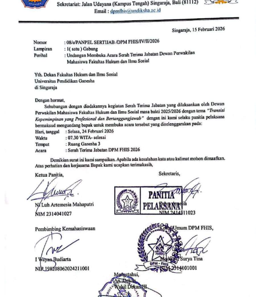 Undangan Membuka Acara Serah Terima Jabatan DPM FHIS Undiksha