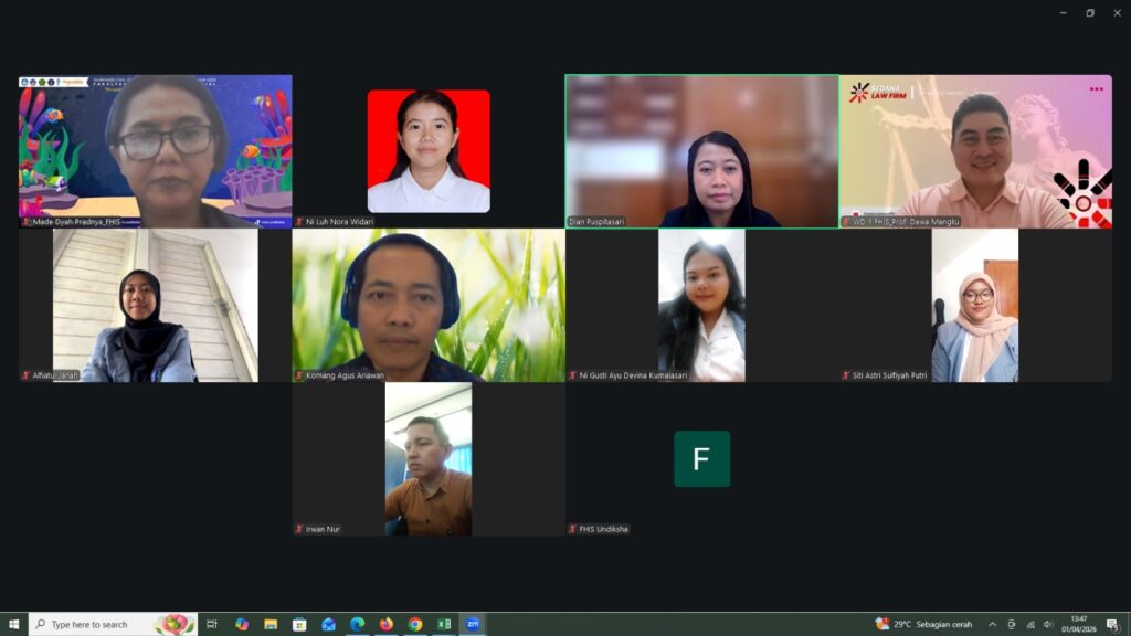 Singaraja – Fakultas Hukum dan Ilmu Sosial (FHIS) Universitas Pendidikan Ganesha (Undiksha) menyelenggarakan kegiatan Yudisium Periode Bulan April Gelombang I Tahun 2026 pada hari Rabu (01/04/2026). Yudisium FHIS Undiksha Periode Bulan April Gelombang I Tahun 2026 yang dilaksanakan secara daring ini diikuti sebanyak 3 orang mahasiswa dari Program Studi Ilmu Hukum (S1) dan Pendidikan Sejarah (S1) yang telah menyelesaikan studinya dalam periode bulan tersebut.