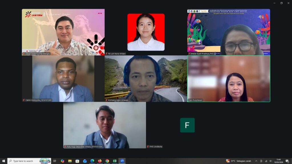 Singaraja – Fakultas Hukum dan Ilmu Sosial (FHIS) Universitas Pendidikan Ganesha (Undiksha) menyelenggarakan kegiatan Yudisium Periode Bulan Maret Gelombang II Tahun 2026 pada hari Selasa (10/03/2026). Yudisium FHIS Undiksha Periode Bulan Maret Gelombang II Tahun 2026 yang dilaksanakan secara daring ini diikuti sebanyak 2 orang mahasiswa dari Program Studi S1 Ilmu Hukum yang telah menyelesaikan studinya dalam periode bulan tersebut.