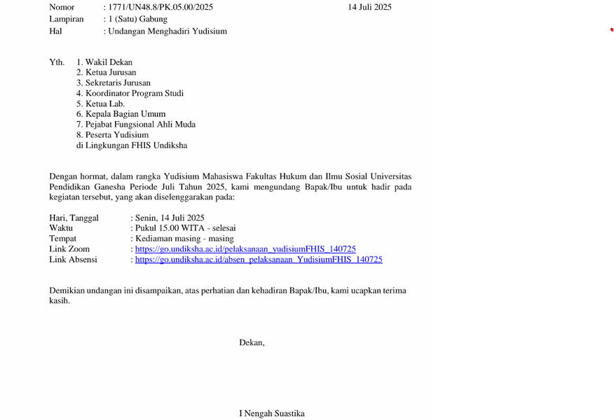 Yudisium Mahasiswa Fakultas Hukum dan Ilmu Sosial UniversitasPendidikan Ganesha Periode Juli Tahun 2025